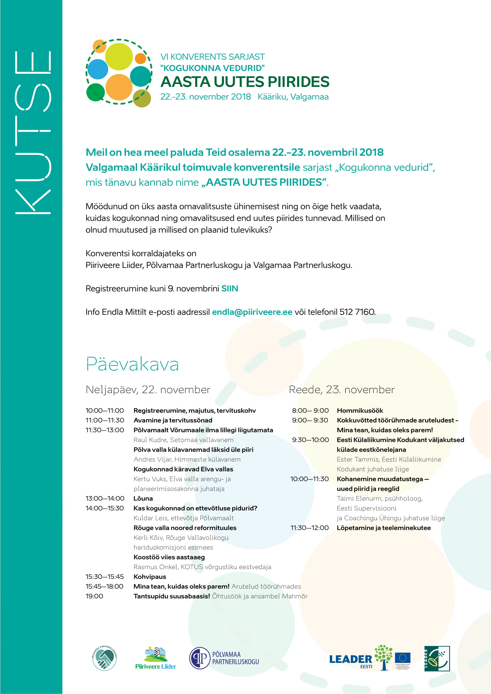 Konverentsi korraldajateks on Piiriveere Liider, Põlvamaa Partnerluskogu ja Valgamaa Partnerluskogu.