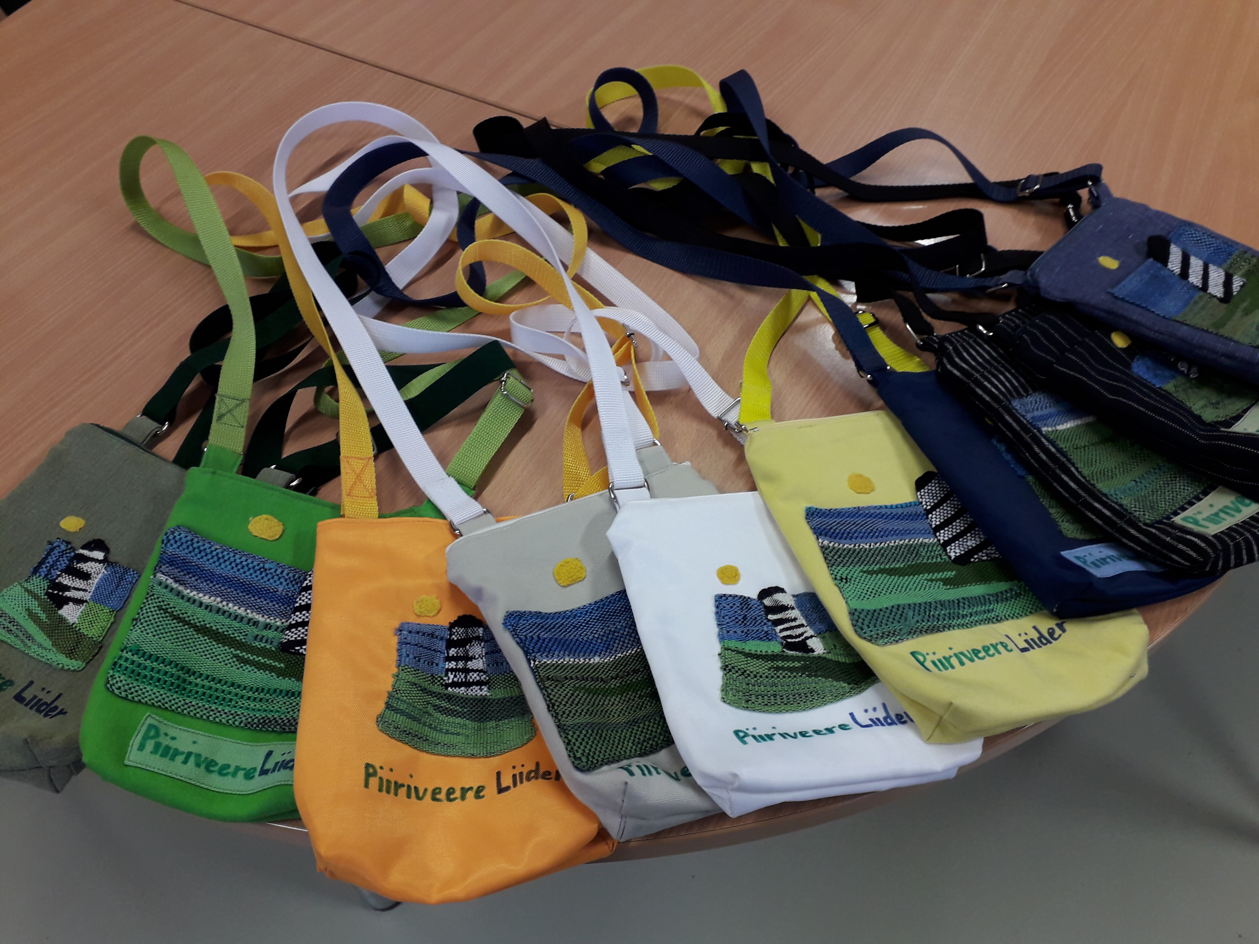 Piiriveere Liideri visuaalsest identiteedist inspireeritult on valminud piirkonna inimeste kätetööna ühingu logoga kaunistatud õlakotid ja küünlad.