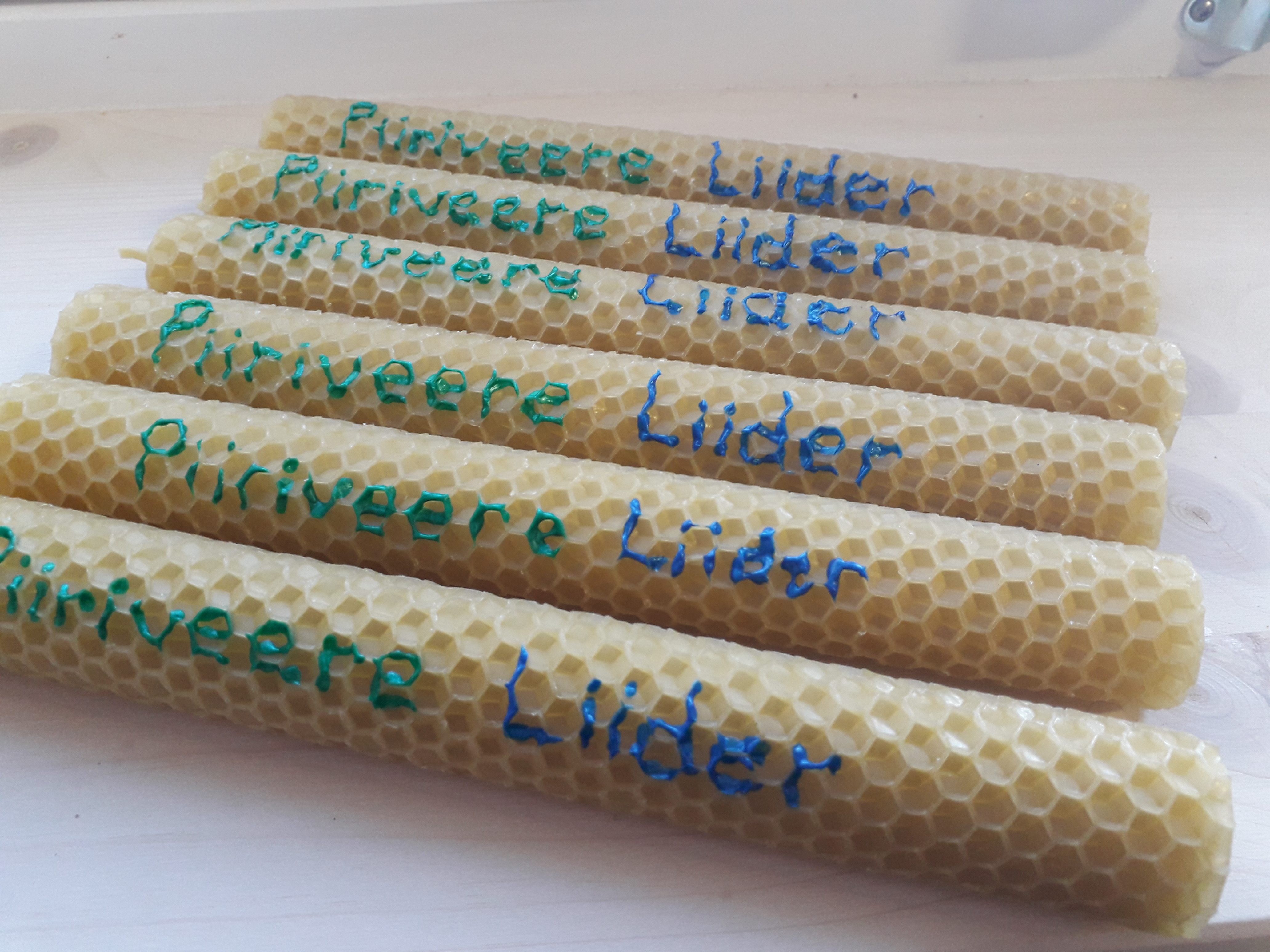 Kangastelgedel kootud Piiriveere Liideri logoga lõbusad õlakotid valmistas kohalik käsitöömeister Heivi Kurg. Piiriveere Liideri logo tekstilise osaga on kaunistatud oma mesilasvahast küünlad Räpina Aianduskooli õpilane Sirelin Jürjenson. Käsitöömeened on mõeldud kingitusteks koostööpartneritele ja Piiriveere Liideri sõpradele.