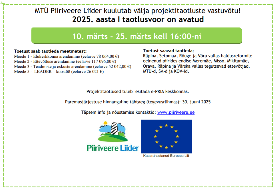 Piiriveere Liider 2025. aasta I taotlusvoor toimub kevadel 10.-25. märts kell 16.00-ni