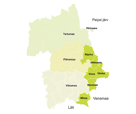 Liikmeskonda kuuluvad nelja omavalitsuse alad Võrumaal ja Põlvamaal (külade nimekiri). Tervikuna kuulub sellesse Setomaa vald. Räpina, Võru ja Rõuge kuuluvad Piiriveere Liidri piirkonda osaliselt. Piirkond on geograafiliselt hajus ja mittekompaktne, ent kultuuriliselt, majanduslikult ja sotsiaalselt ühtne.